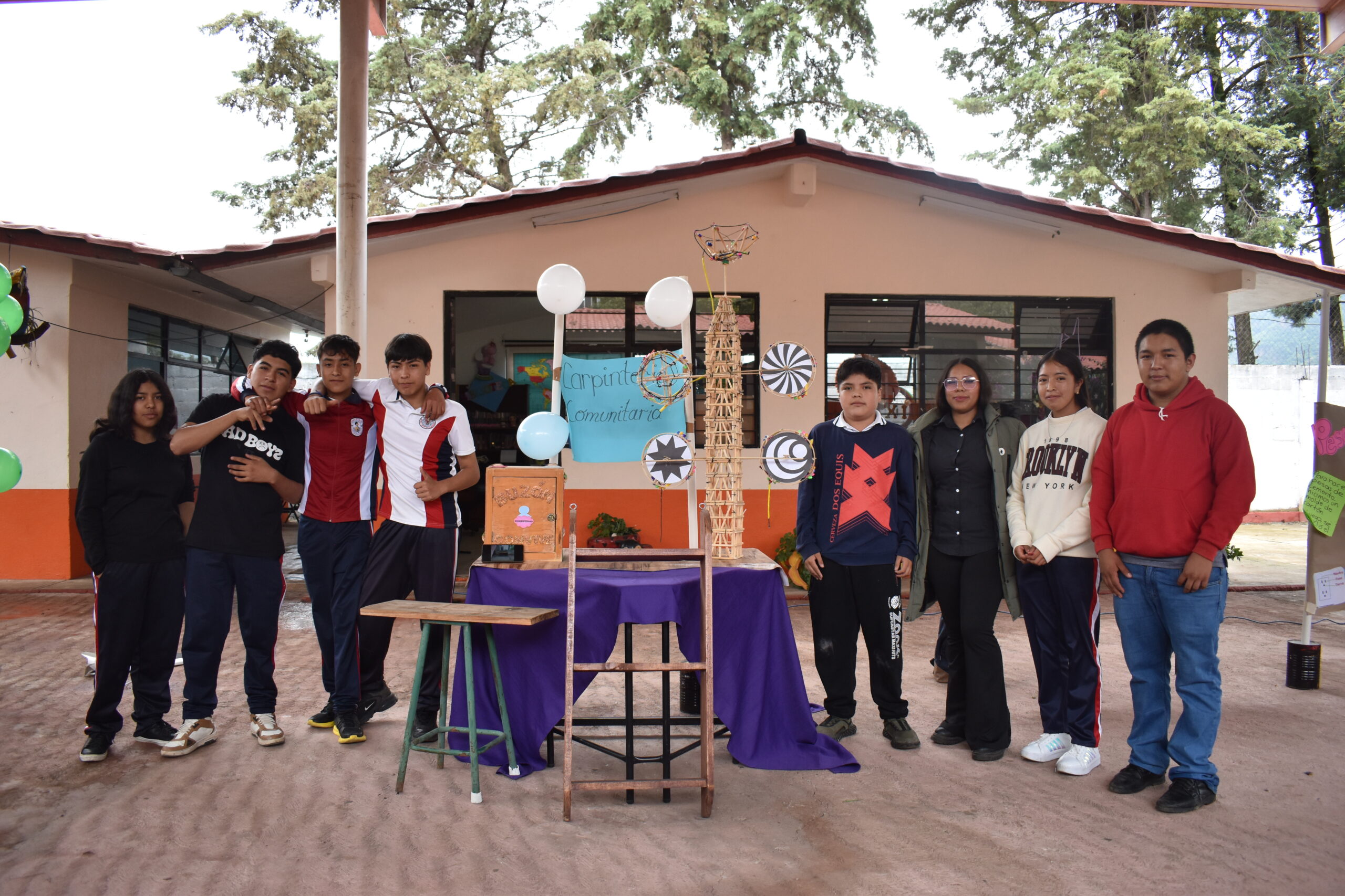 El 17de junio, estudiantes de la Secundaria Josefa Ortiz de Domínguez, en San Nicolás, presentaron sus proyectos finales en las áreas de agricultura, carpintería, dibujo, escultura, pintura y albañilería.